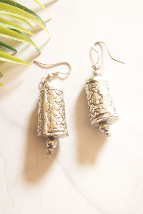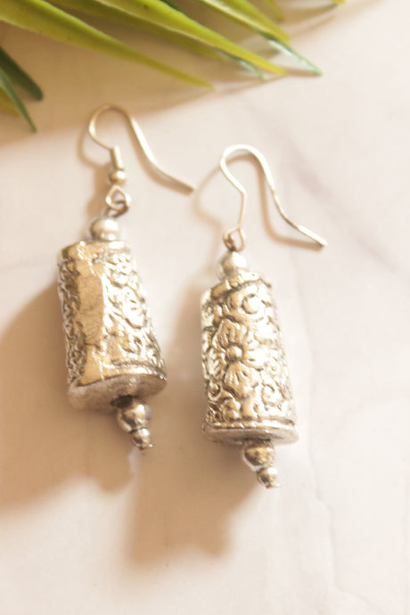 Black and Maroon Block Printed Fabric and Oxidised Metal Pendant Collar Necklace Set