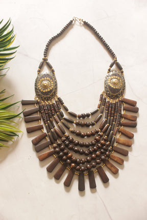 Brown and Gold Bone Beads Handcrafted Multi-Layer African Tribal Necklace
