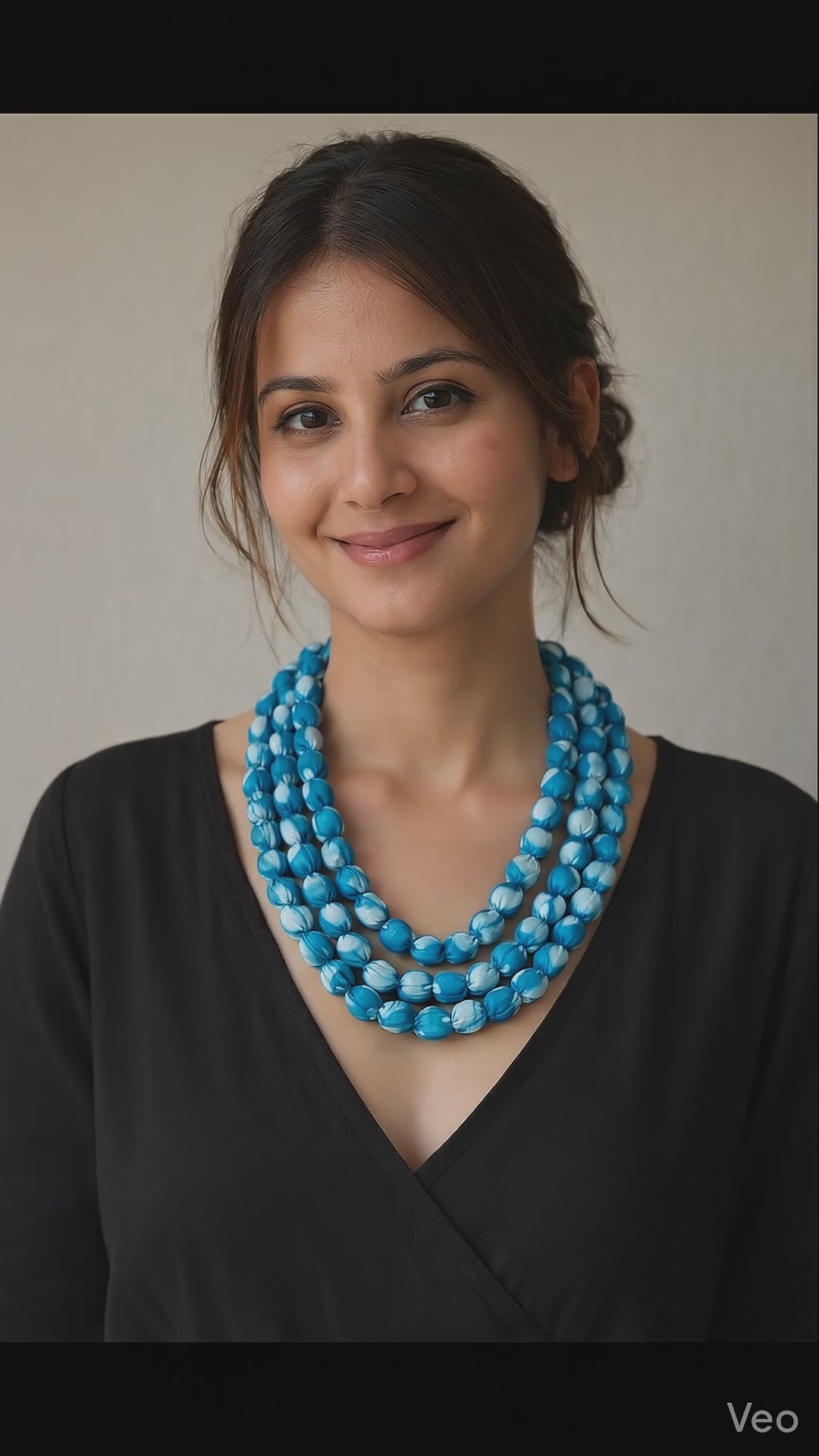 Multi-Layer Shades of Blue Earthy Tones Fabric Beads Necklace