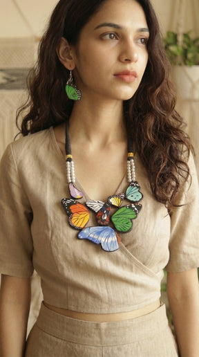 Vibrant Butterfly Hand Painted Terracotta Clay Necklace Set