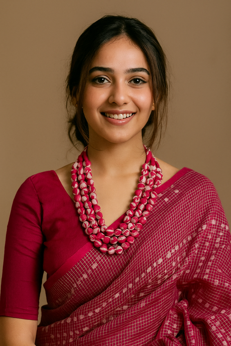 575 INR700Unit price /UnavailablePink & Off-White Fabric Beads 3 Layer Handmade Necklace