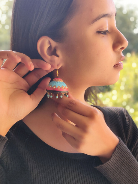 699 INR899Unit price /UnavailableBlue and Red Traditional Terracotta Jhumka Earrings