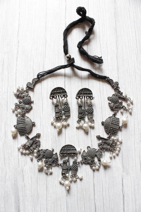 375 INR599Unit price /UnavailableBride Palki and Birds Premium Oxidised Finish Adjustable Length Afghani Choker Necklace Set