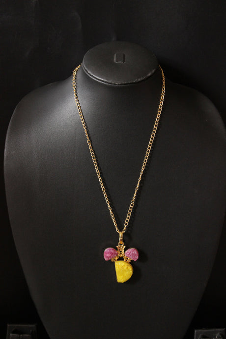 650 INR1,299Unit price /UnavailableBright Yellow and Pink Sugar Druzy Gemstone Embedded Gold Plated Handmade Necklace