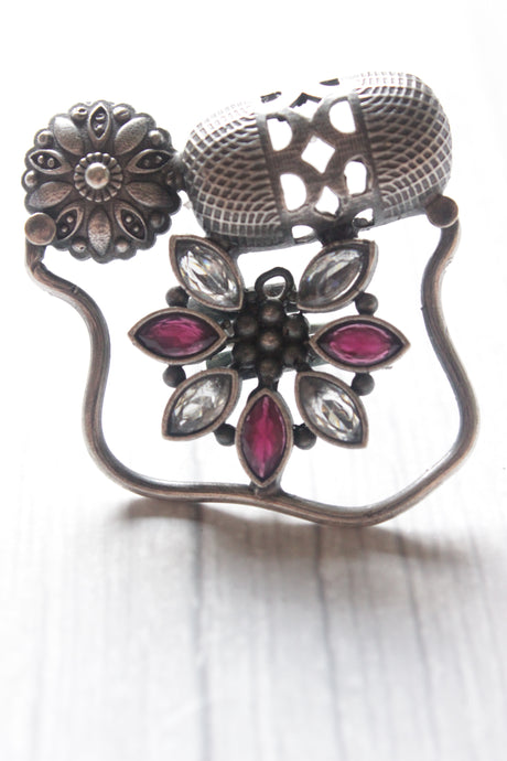380 INR550Unit price /UnavailableFlower Motifs Oxidised Silver Finish Statement Adjustable Cocktail Ring