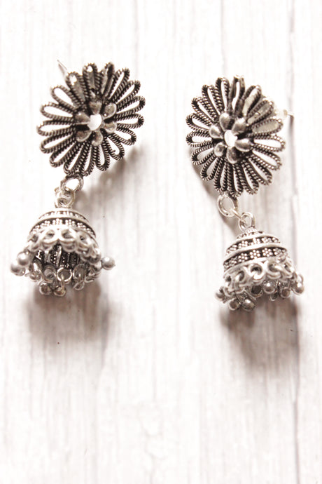 875 INR1,599Unit price /UnavailableFlower Motif Oxidised Silver Finish Jhumka Earrings