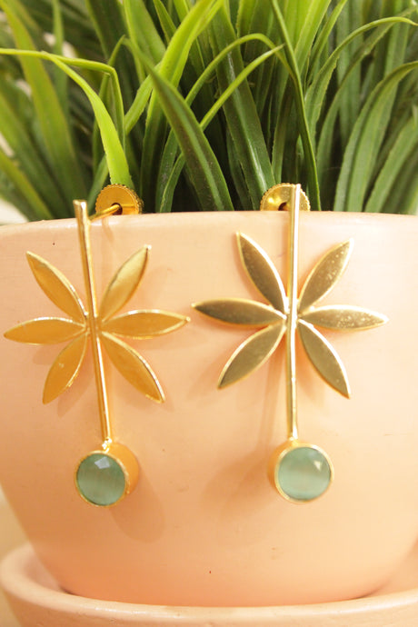 425 INR699Unit price /UnavailableGreen Cat Eye Lily Flower Gold Plated Earrings
