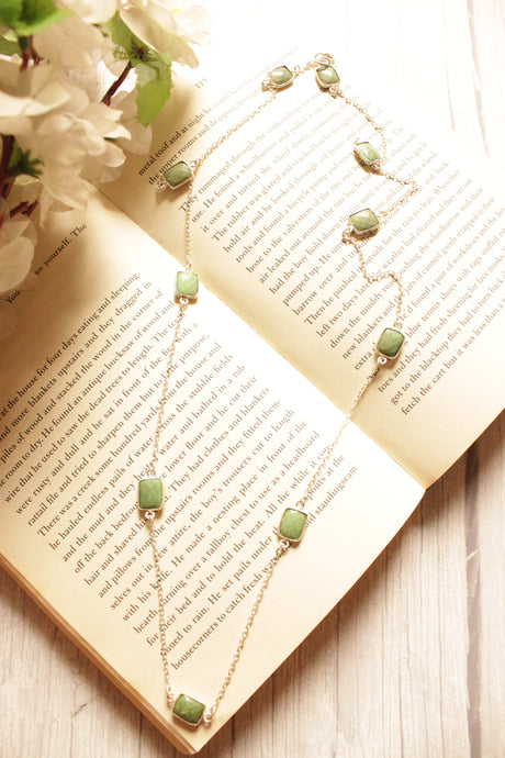425 INR450Unit price /UnavailableGreen Chalcedony Cut Natural Gemstone Embedded Silver Plated Necklace