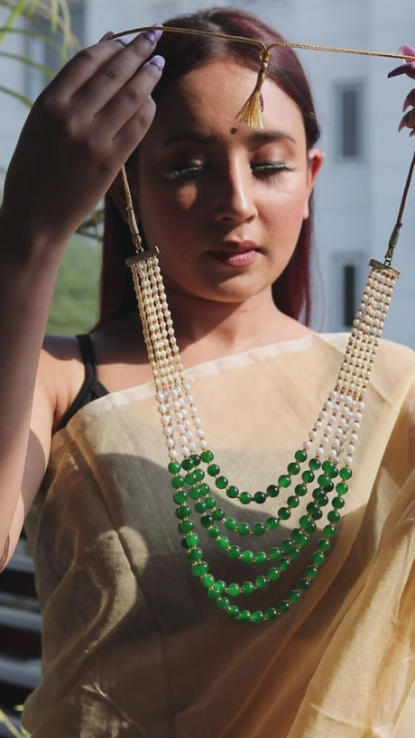 749 INR799Unit price /UnavailableGreen Beaded Multi Layered Necklace Set with Metal Detailing