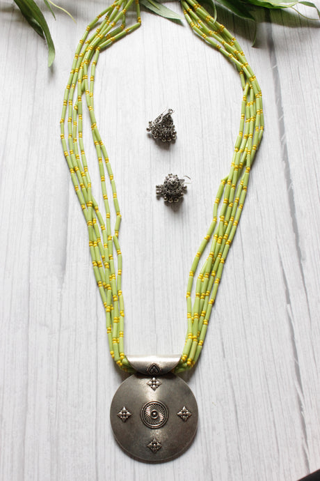 525 INR699Unit price /UnavailableGreen Beads Braided Necklace Set with Statement Silver Finish Pendant