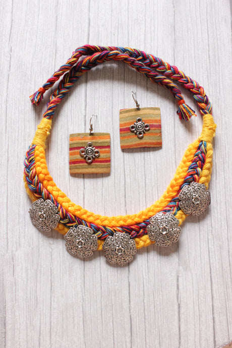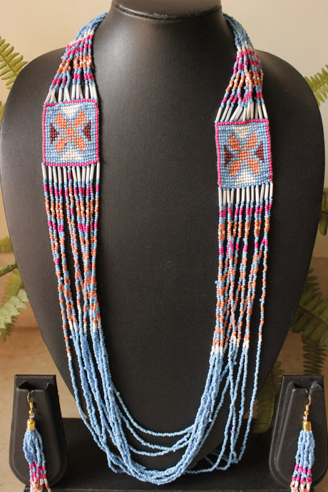 525 INR699Unit price /UnavailableHand Braided Vibrant Yellow with Pink and Blue Tones Beaded Long Necklace Set
