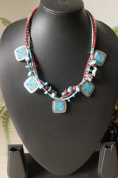 475 INR700Unit price /UnavailableHand Braided Turquoise and Red Multi-Layer Choker Necklace