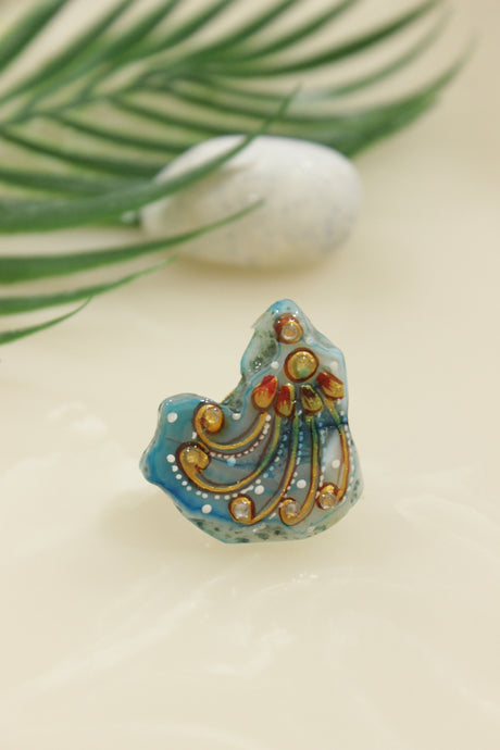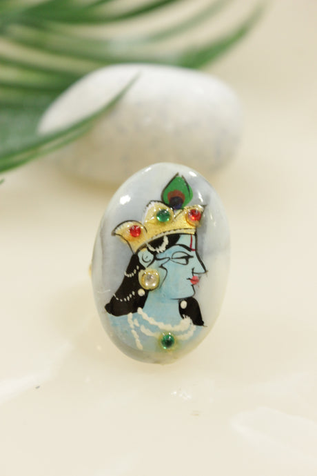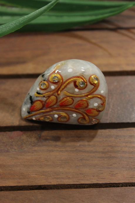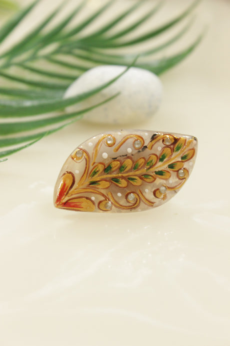 500 INR550Unit price /UnavailableHand Painted Flowers on Oval Shape Ivory Marble Adjustable Cocktail Ring with Hints of Gold