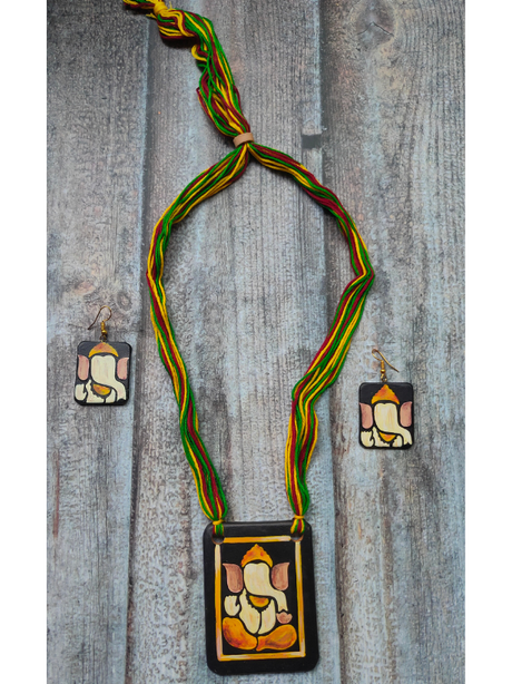 450 INR500Unit price /UnavailableHand Painted Ganesha Clay Necklace Set with Multi-Color Thread Closure