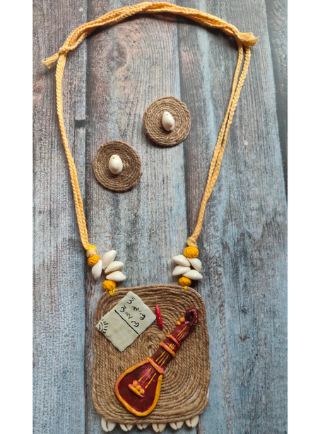 375 INR599Unit price /UnavailableHandcrafted Sitar Motif Jute Necklace Set with Shell Work