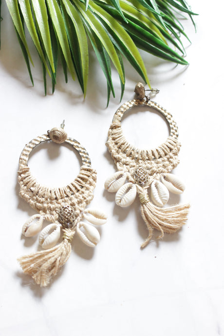 575 INR650Unit price /UnavailableHandmade Jute and Shell Hoop Earrings