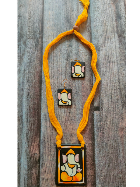 400 INR599Unit price /UnavailableHandmade Ganesha Terracotta Necklace Set with Yellow Thread Closure