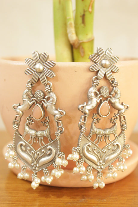 250 INR350Unit price /UnavailableHorse and Deer Motifs Silver Finish Statement Brass Earrings
