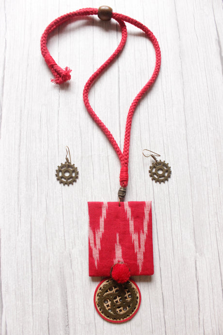 375 INR500Unit price /UnavailableIkat Printed Fabric Necklace Set with Metal Leaves Detailing