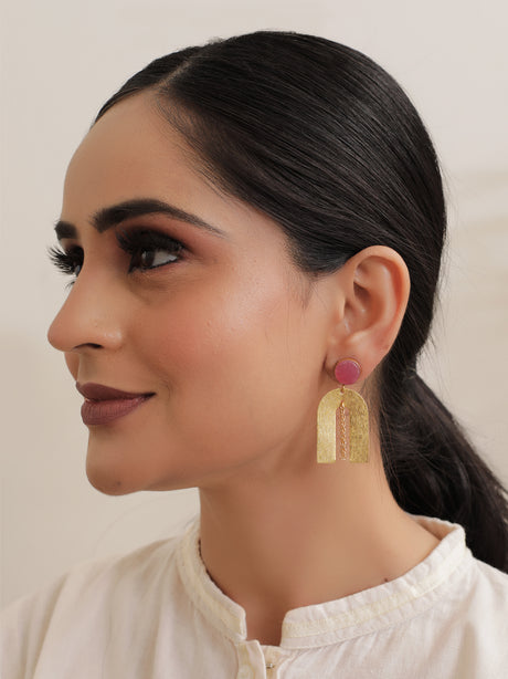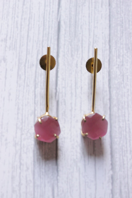 450 INR550Unit price /UnavailableHexagon Pink Cat Eye Quartz Gemstone Gold Plated Bar Earrings