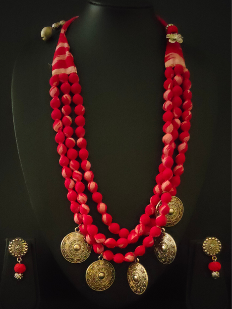 595 INR800Unit price /UnavailableIkat Fabric Beads Statement Necklace Set with Thread Closure
