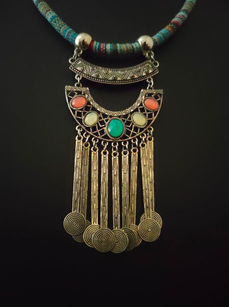 475 INR650Unit price /UnavailableHasli Style Fabric Threads and Metal Chains Beaded Necklace