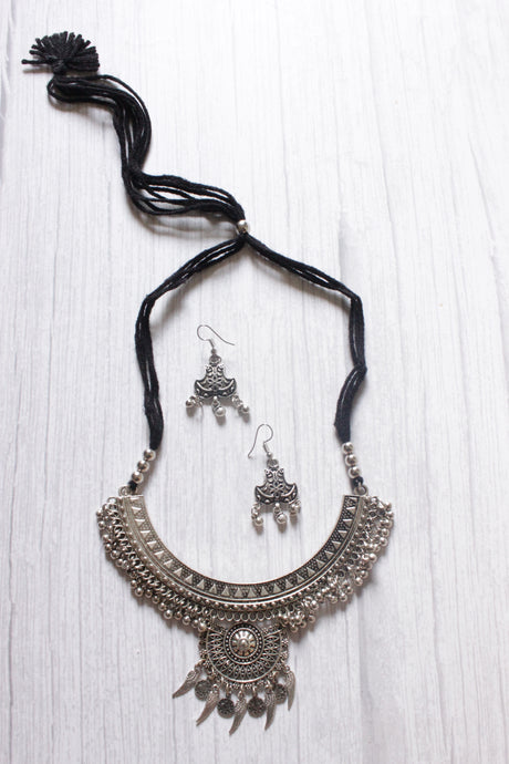 450 INR550Unit price /UnavailableHasli Style Elaborately Detailed Adjustable Thread Closure Premium Oxidised Finish Brass Necklace