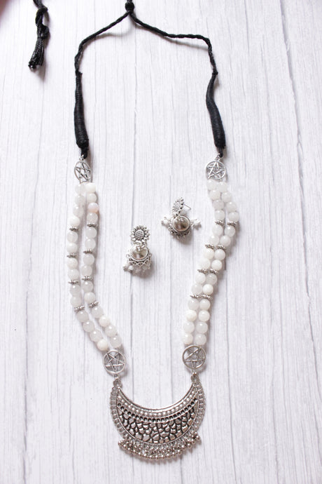 650Unit price /Unavailable Intricately Detailed Silver Finish Metal Pendant Jade Beads Necklace Set