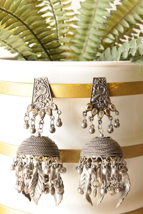 Intricately Detailed Oxidised Finish Dangler Jhumka Earrings