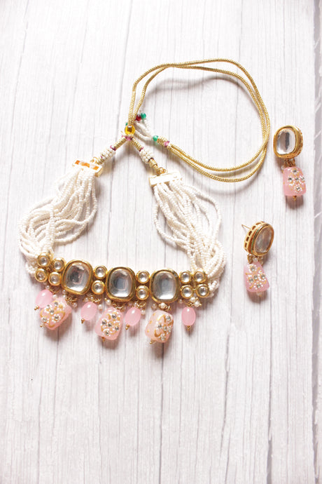 1,100Unit price /Unavailable Kundan Stones Embedded Matt Gold Finish Multi-Layer White Beads Necklace Set