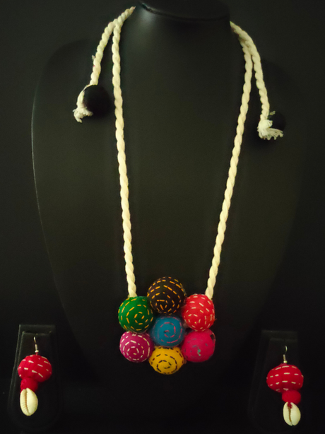 450 INR599Unit price /UnavailableKantha Work Fabric Necklace Set with Rope Closure and Shell Earrings