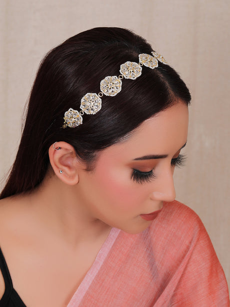 478 INR500Unit price /UnavailableKundan Stones Embedded Circular Flower Motifs Gold Toned Matha Patti