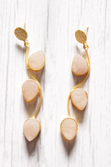 450 INR600Unit price /UnavailableLeaf Motif Baby Pink Natural Stones Embedded Brass Dangler Earrings