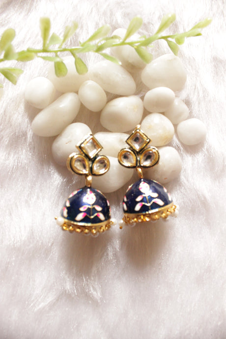 375 INR500Unit price /UnavailableKundan Stones Embedded Royal Blue Hand Painted Meenakari Work Jhumka Earrings