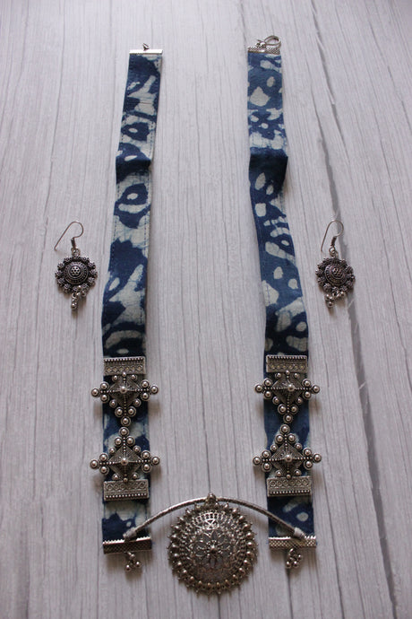 450 INR599Unit price /UnavailableKantha Work Indigo Fabric Necklace Set with Metal Pendant