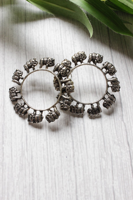 399Unit price /Unavailable Metal Ghungroo Embellished Oxidised Finish Lightweight Metal Jhumka