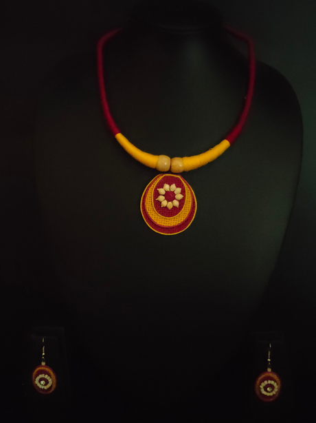 375 INR549Unit price /UnavailableMinimalist Elegant Red & Yellow Jute Necklace Set with Thread Closure