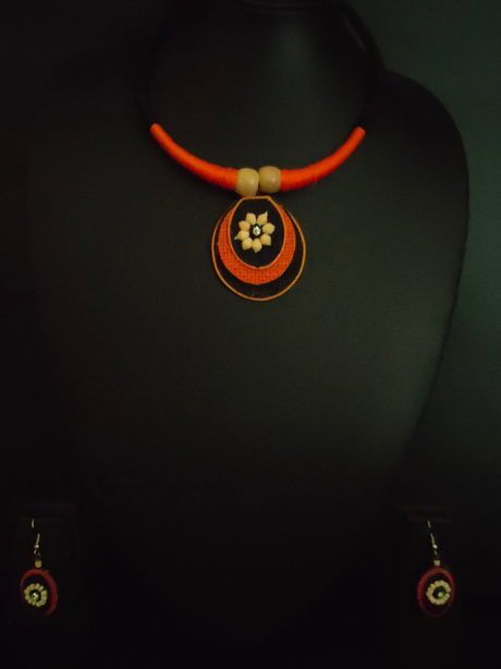 375 INR549Unit price /UnavailableMinimalist Elegant Orange & Black Jute Necklace Set with Thread Closure