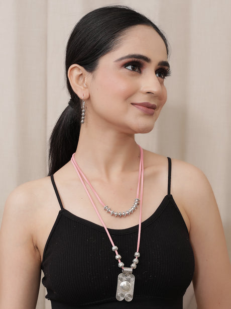 499Unit price /Unavailable Mirror Oxidised Silver Long Chain Necklace Set