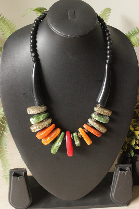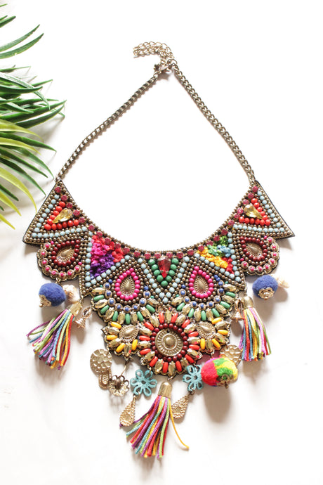 500 INR599Unit price /UnavailableMulti-Color Acrylic and Wooden Beads Hand Beaded Statement Tribal Necklace with Elephant Motif