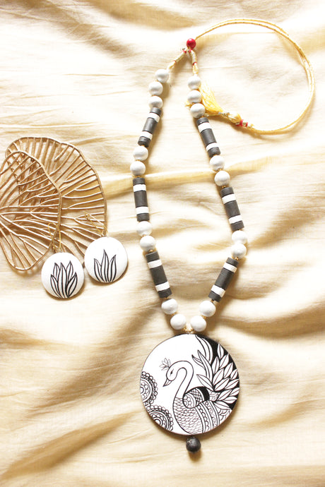 450 INR550Unit price /UnavailableMonochrome Peacock Hand Painted Terracotta Clay Necklace Set with Adjustable Thread Closure