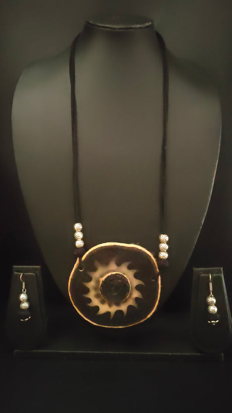 475 INR550Unit price /UnavailableMonochrome Hand Painted Peacock Teracotta Clay Necklace Set