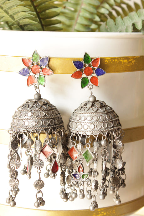 350 INR450Unit price /UnavailableMulti-Color Acrylic Work Silver Finish Afghani Earrings Embellished with Ghungroo Beads