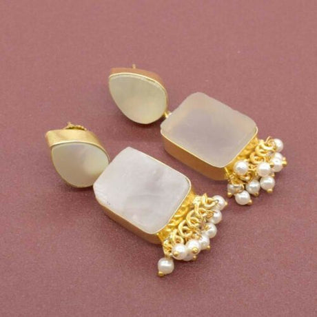 445 INR699Unit price /UnavailableMOP White Quartz Rough Gemstone Gold Plated Earrings