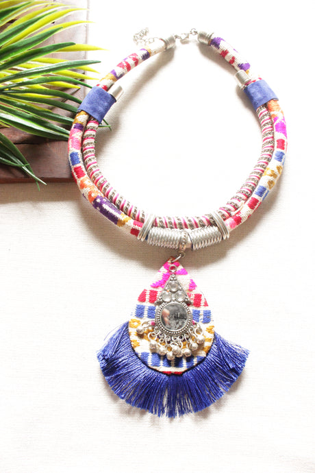 599 INR699Unit price /UnavailableMulti-Color Fabric Threads Embroidered Necklace Embellished with Mirrors and Metal Beads