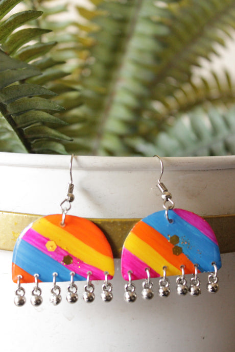 Multi-Color Dome Shaped Resin Earrings Accentuated with Ghungroo Beads
