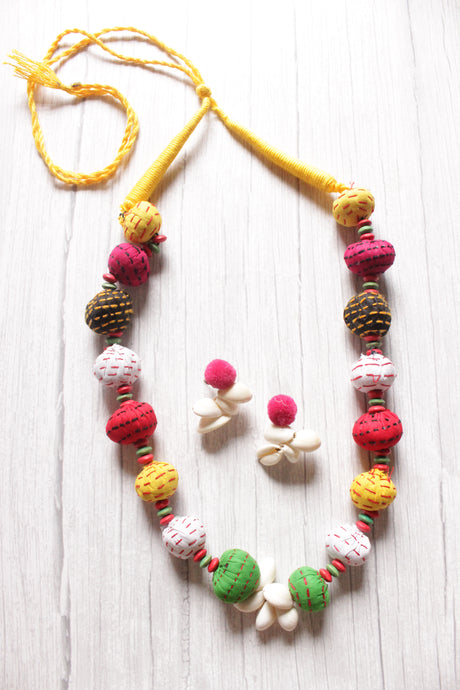 649 INR799Unit price /UnavailableMulti-Color Hand Stitched Fabric Beads and Shell Work Fabric Necklace Set