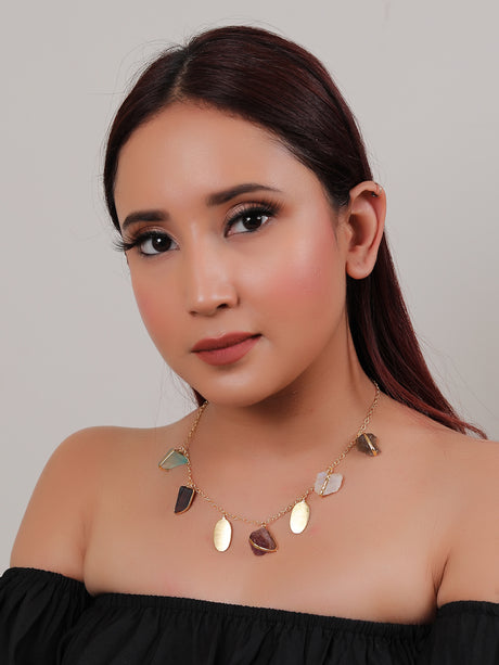 450 INR599Unit price /UnavailableMulti-Color Raw Cut Natural Gemstones Embedded Gold Finish Chain Necklace