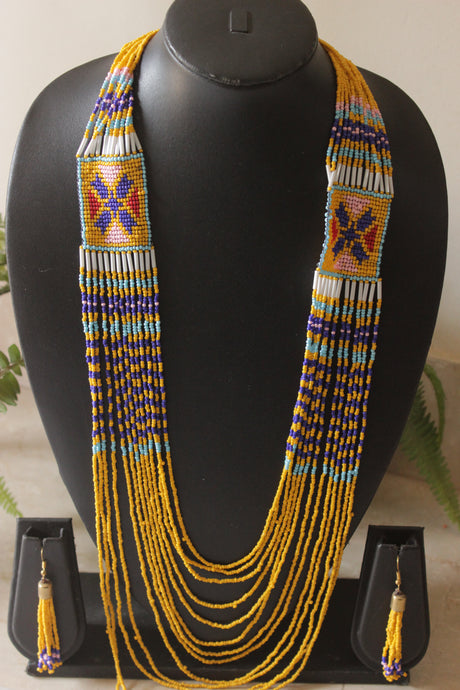 425 INR550Unit price /UnavailableMustard Yellow and Purple Hand Beaded Long Necklace Set