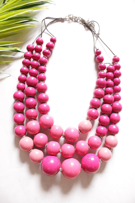 Pink Wooden Beads 3 Layer Chain Closure Necklace